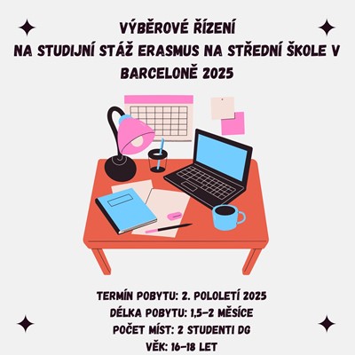 Otevíráme výběrové řízení na 2 místa na studijní stáž Erasmus na střední škole v Barceloně na jaro 2025. celý článek