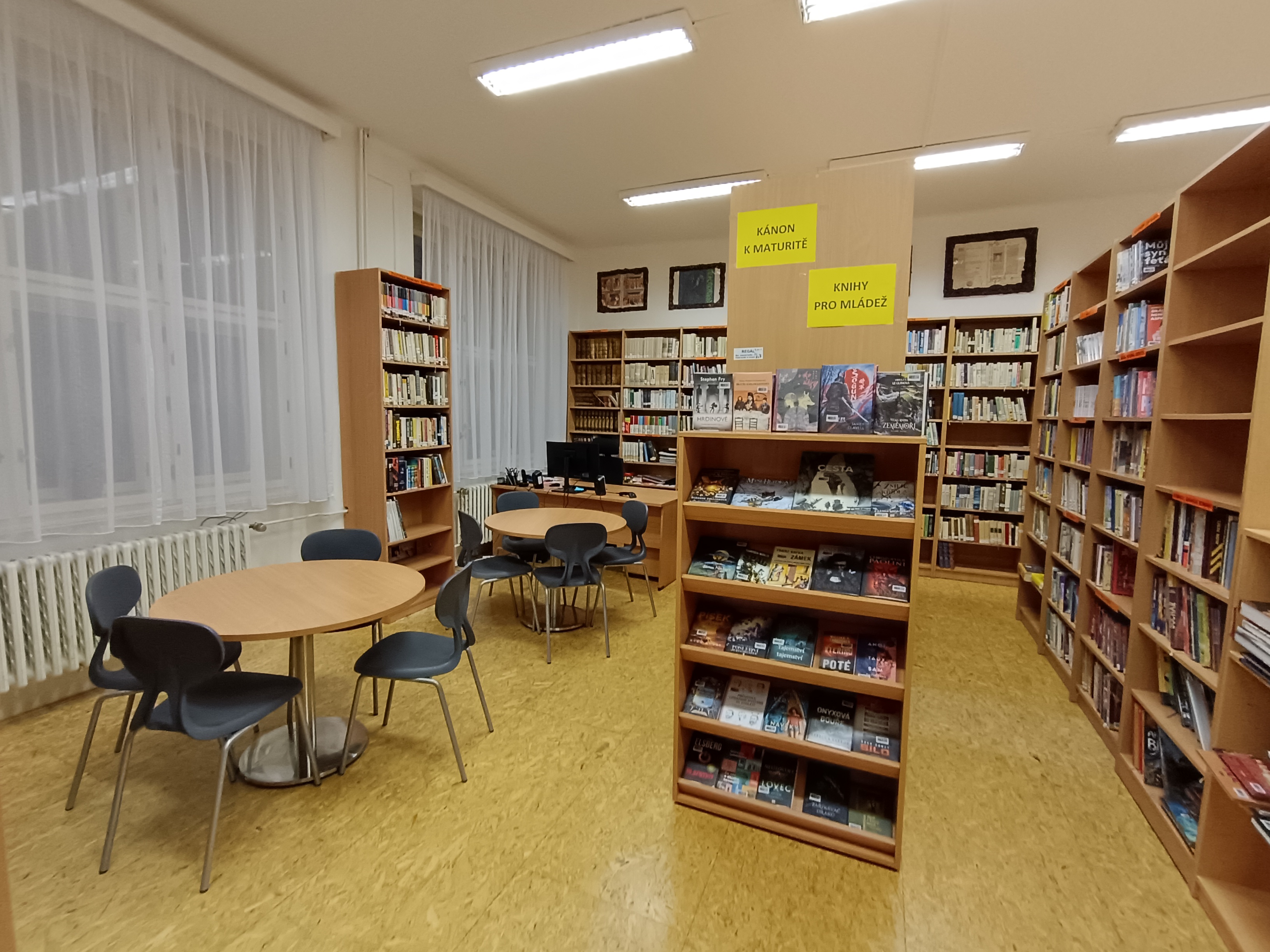 Nové stoly a knihovní regály byly pořízeny i do prostor samotné školní knihovny, která se nám zároveň rozrostla o neuvěřitelných 1300 nových knih všech žánrů, a díky kterým se podařilo do knihovny přilákat spoustu nových čtenářů z řad našich studentů i zaměstnanců. Na výběru nových knih měli možnost se podílet nejen vyučující českého jazyka a literatury, ale ve velké míře i samotné studentky a studenti. Seznam všech doposud zakoupených nových knih naleznete v příloze.