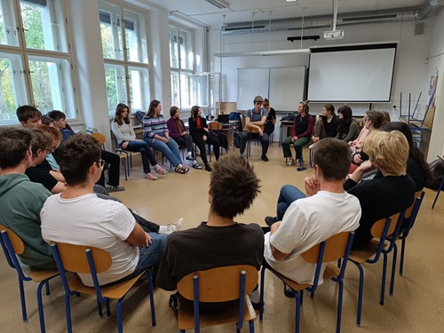 Již se stalo na naší škole tradicí, že na podzim se někteří naši žáci díky zážitkovým workshopům společnosti Post Bellum na jedno dopoledne přesunou v čase do zajímavých období minulého století. Letos si tak septimáni mohli vyzkoušet formou her a doprovodných aktivit workshopu V boj, jaké to bylo být mladým skautem z Prahy nebo mladou Němkou z pohraničí, do jejichž životů zasáhla druhá světová válka.