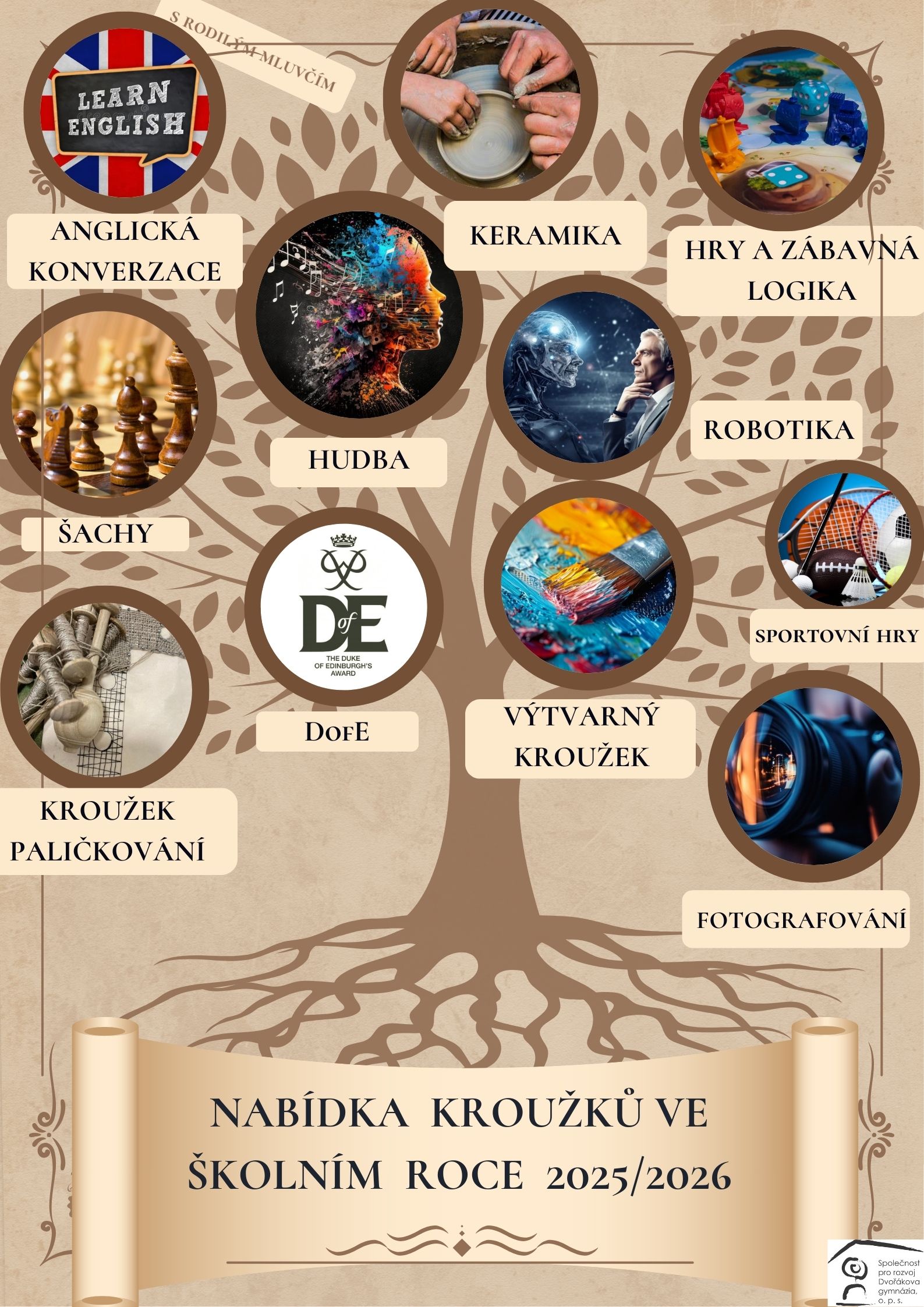 Nabídka kroužků na školní rok 2025/2026 je tu! Společnost pro rozvoj Dvořákova gymnázia, o.p.s. představuje čerstvou nabídku kroužků, do kterých se můžete přihlásit v novém školním roce. Ať už chcete trénovat mozek, svaly, nebo kreativitu, věříme, že si každý najde to svoje. Podrobné informace o jednotlivých kroužcích, jejich náplni, časech konání a způsobu přihlášení naleznete v přiloženém dokumentu/na tomto odkazu. Těšíme se na Vaši účast! celý článek