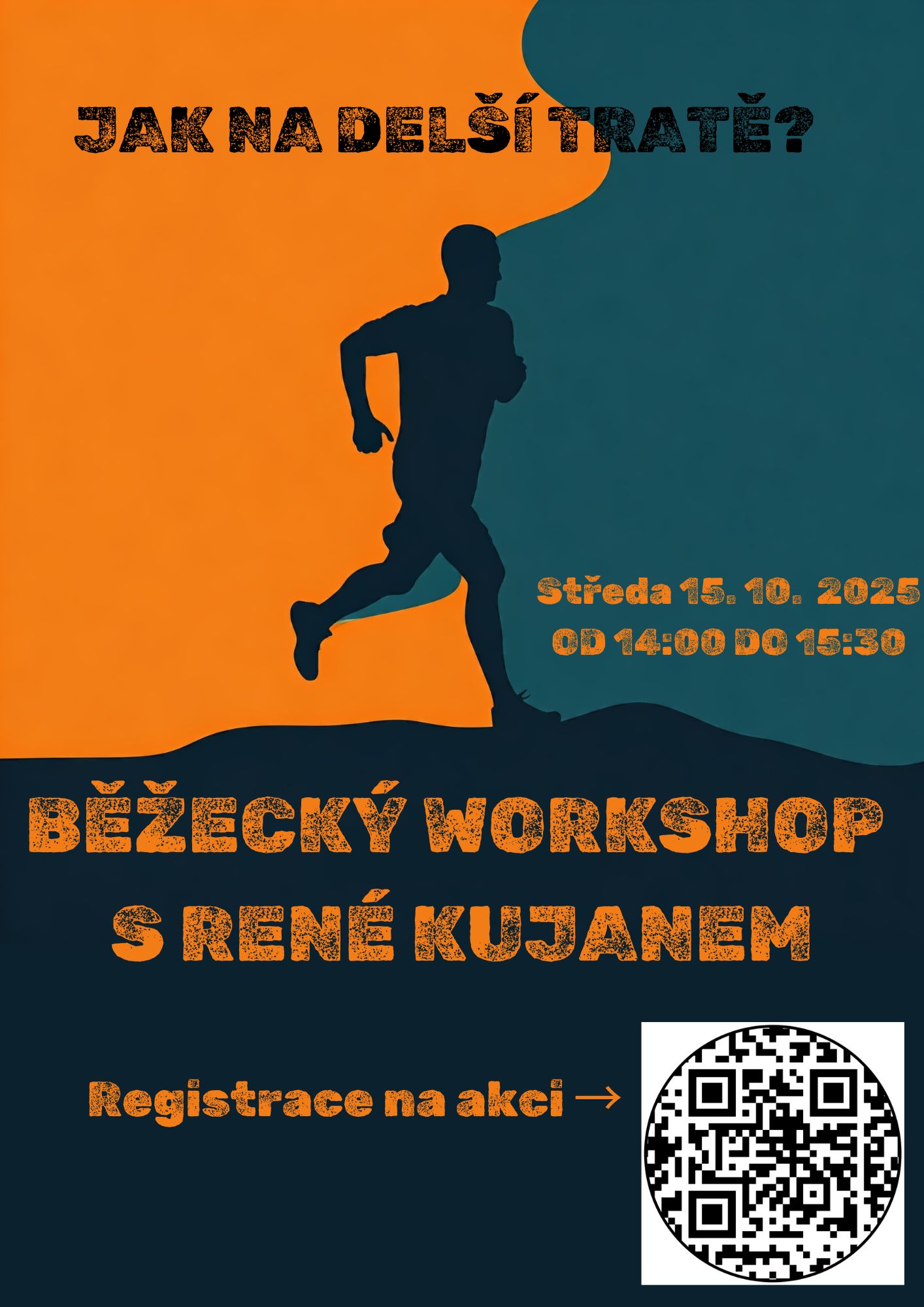 Zveme všechny začínající i pokročilé běžce na workshop s René Kujanem. Kdy: Středa 15. 10. 2025 od 14:00 do 15:30 Téma workshopu: Jak běhat na delší tratě v terénu i na asfaltu celý článek