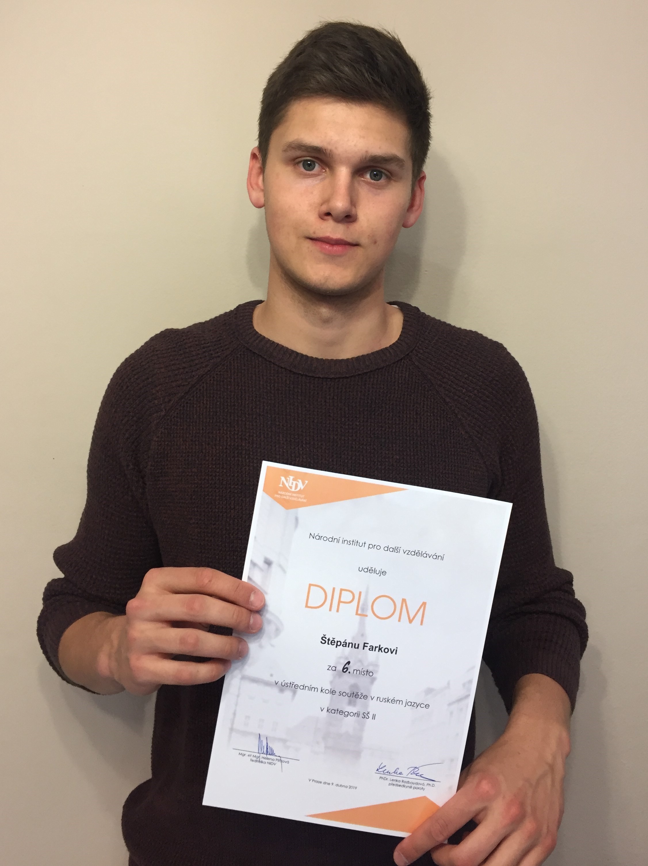 Dne 9.4. 2019 se konalo v Praze v Ruském středisku vědy a kultury ústřední kolo olympiády v ruském jazyce. Do tohoto kola postoupil vítěz krajského kola kategorie II SŠ Štěpán Farka ze 4.A. I v celorepublikovém kole byl velmi úspěšný, získal 6. místo. Štěpánovi gratulujeme a přejeme hodně úspěchů při maturitě. celý článek