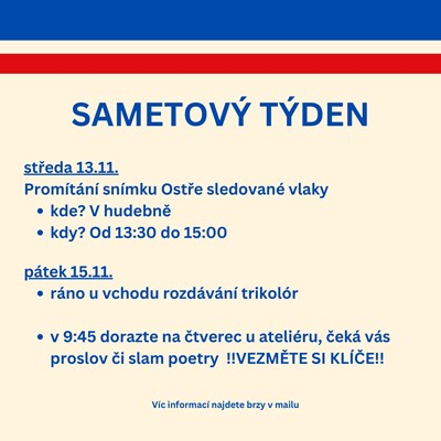 Tento rok oslavíme 35. výročí sametové revoluce. Rádi bychom vás upozornili na akce, které se chystají na DG v rámci projektu Sametový týden. celý článek