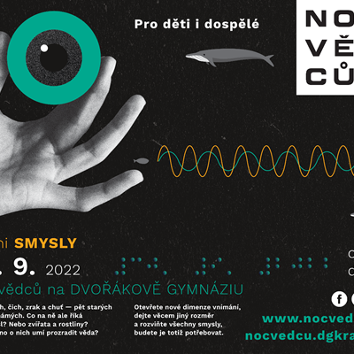 Chcete si prozkoušet své smysly a porozumět tomu, jak fungují? Pak přijďte s celou rodinou na tradiční Noc vědců, která je letos věnovaná všem smyslům. Interaktivní program připravený studenty a pedagogy Dvořákova gymnázia Vám představí nejen těch pět základních, ale i další smysly, bez kterých bychom se v životě neobešli. Akce se uskuteční v prostorách gymnázia v pátek 30. 9. 2022 od 17.00 do 21.00. celý článek