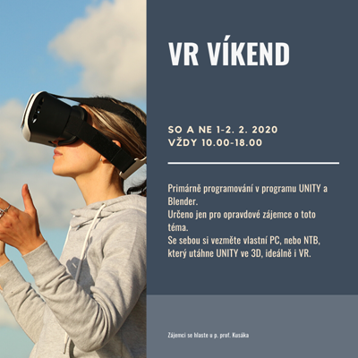 Pro opravdové zájemce o programování v UNITY a úvodu v Blenderu je určen Víkend Virtuální reality. Uskuteční se v sobotu a neděli 1-2. 2. 2020 vždy od 10.00 do 18.00. celý článek
