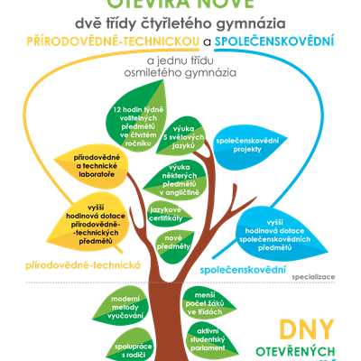 Vážení rodiče, milé studentky, milí studenti – současní i ti, kteří máte zájem o studium na naší škole, od příštího školního roku - 2019/2020 dojde ke změně: nebudeme otevírat třídu obchodní akademie (obor 63-41-M/02), naopak však budeme nabízet studium ve dvou třídách čtyřletého gymnázia (obor 79-41-K/41). V osmiletém studiu budeme tradičně otevírat jednu třídu. Současných studentů obchodní akademie, čtyřletého i osmiletého gymnázia se tyto změny vůbec nedotknou. Všichni žáci obchodní akademie, kteří u nás studují, budou normálně ve svém studiu na naší škole pokračovat až do své maturity. celý článek