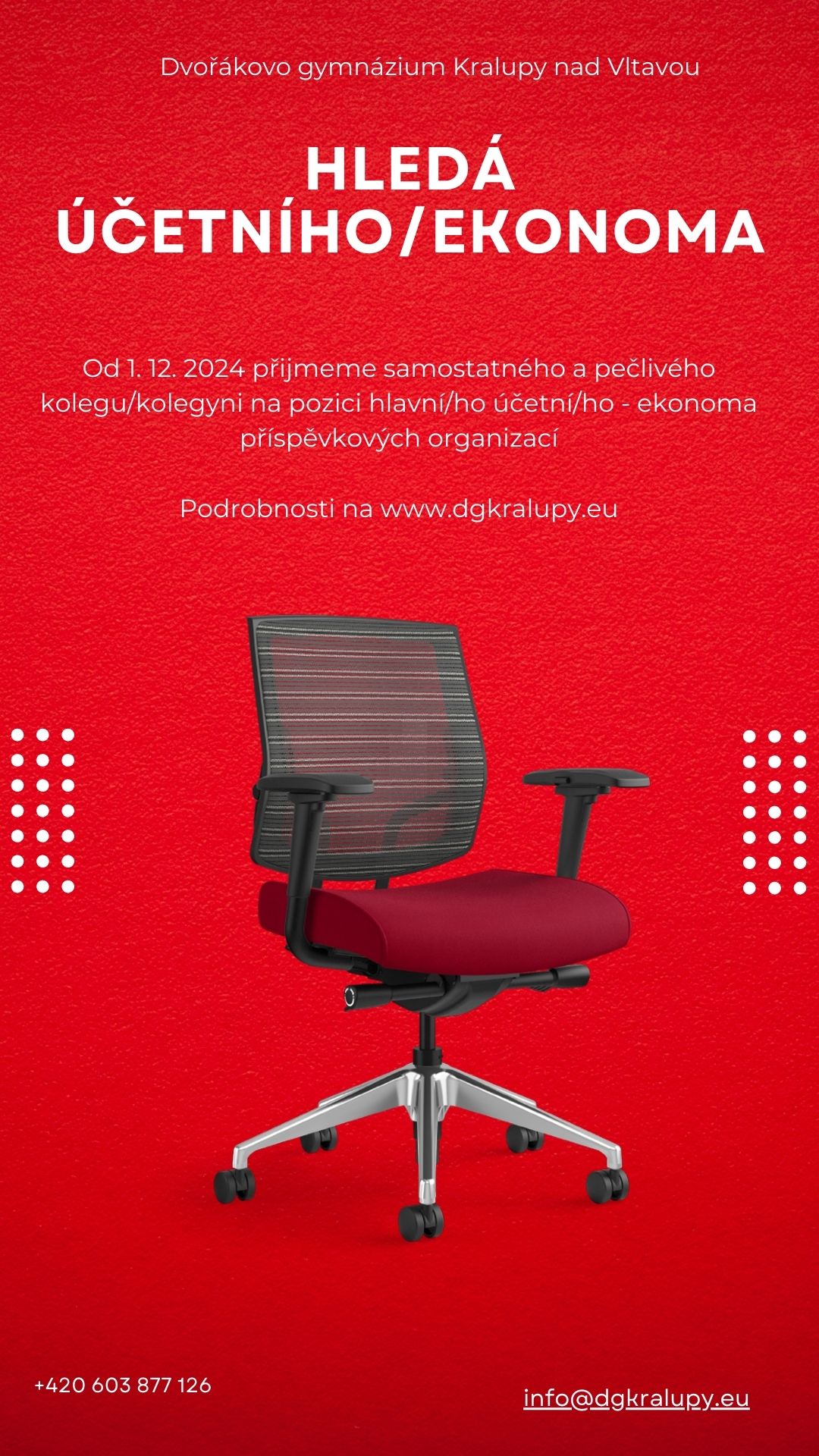 Dvořákovo gymnázium Kralupy nad Vltavou, příspěvková organizace hledá samostatného a pečlivého kolegu/kolegyni na pozici hlavní/ho účetní/ho - ekonoma příspěvkových organizací. celý článek