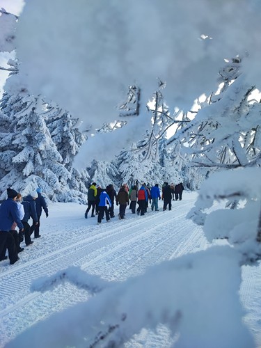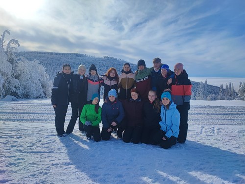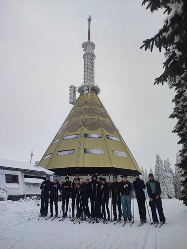 V neděli 1.2. vyrazili studenti prvních ročníků čtyřletého gymnázia na týden do Pece pod Sněžkou na lyžařský výcvikový kurz. K Husově boudě si to museli poctivě vyšlápnout a odpoledne je čekalo rozřazení do lyžařských družstev.