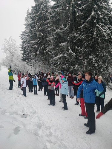 Středa byla netradiční. Dopoledne se vyrazilo na procházku, odpoledne na výlet na běžkách zakončený zaslouženou sladkou tečkou. Večeru nechybělo zpívání a hra.