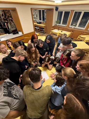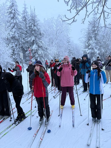 V neděli 1.2. vyrazili studenti prvních ročníků čtyřletého gymnázia na týden do Pece pod Sněžkou na lyžařský výcvikový kurz. K Husově boudě si to museli poctivě vyšlápnout a odpoledne je čekalo rozřazení do lyžařských družstev.