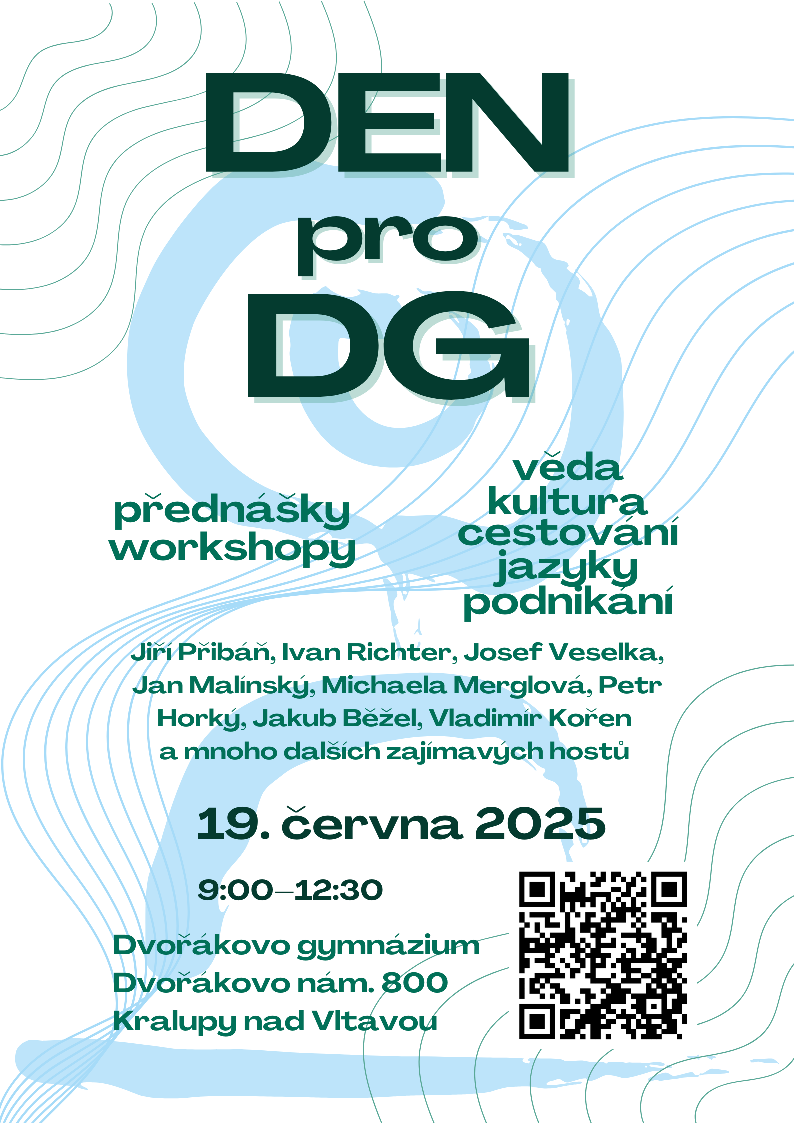 Na 20 inspirativních hostů bude vyprávět o svých profesích na druhém ročníku Dne pro DG. Přijďte si poslechnout vědce, právníky, sportovce, historiky či polygloty a nahlédnout do jejich oborů. Besedy a přednášky jsou určené nejen pro studenty Dvořákova gymnázia, ale i pro širokou veřejnost z Kralup nad Vltavou a okolí. celý článek