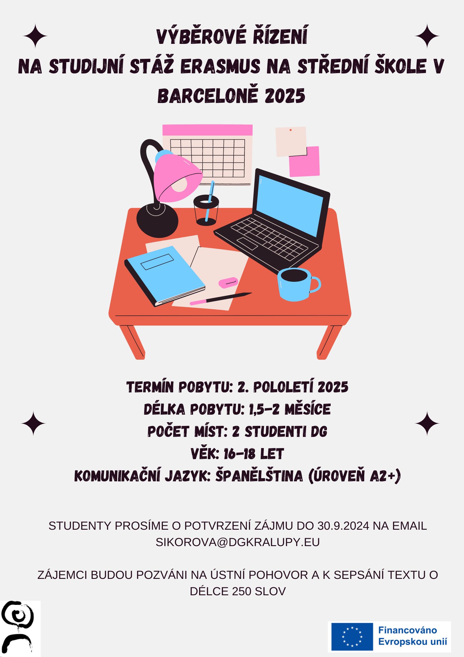 Otevíráme výběrové řízení na 2 místa na studijní stáž Erasmus na střední škole v Barceloně na jaro 2025. celý článek