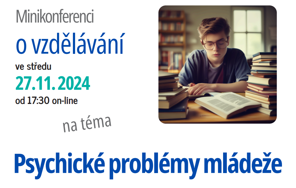 Děkujeme za Vaši účast na on-line Minikonferenci o vzdělávání s tématem Psychické problémy mládeže, kde vystoupili: PhDr. Josef Mižigar, psycholog a terapeut, PhDr. Nora Jakobová, terapeutka a školní psycholožka Gymnázia Jana Palacha v Praze. Záznam celé konference (i s prezentacemi přednášejících) můžete shlédnout na Youtube na odkazu: 1url.cz/@DG2024 celý článek
